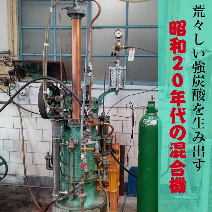 瓶ジュースが最盛期だった昭和30年代。人の手がかかる当時の機械を使い、その当時の製法を令和の今日まで守り続けています。
