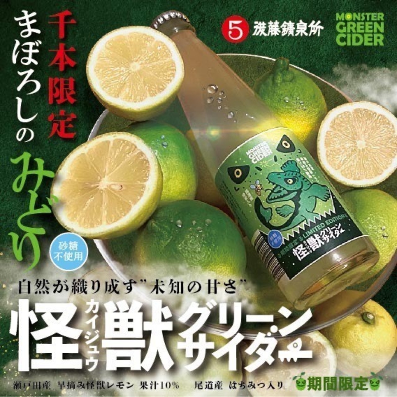 最高品質のレモンと蜂蜜を楽しんでもらいたい一心で、こだわりにこだわりぬいて作ったレモンサイダー”怪獣グリーンサイダー”。